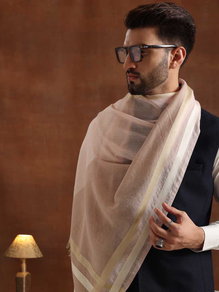 Stripes Wool Silk Scarf Unisex